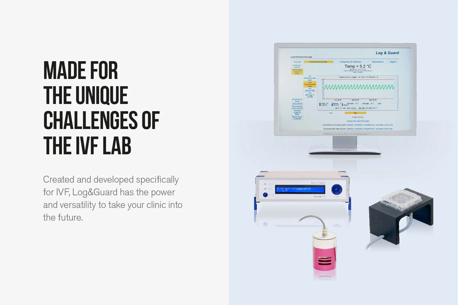 Log & Guard is an advanced system for monitoring critical factors in IVF labs, such as carbon dioxide levels in incubators, temperatures in freezer tanks and humidity in the laboratory.